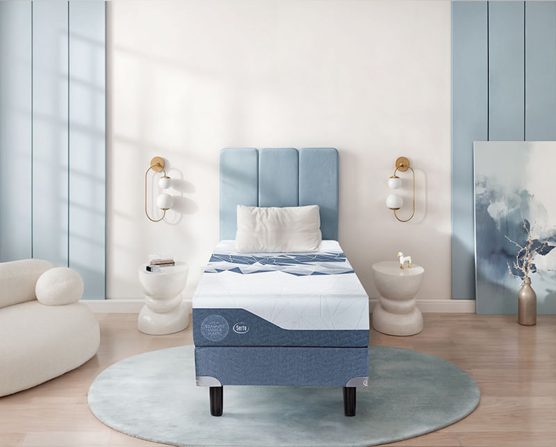 El sistema de resortes pocket enfundados individualmente disminuye la transferencia de movimiento al dormir de a dos, adaptándose a cada posición de descanso